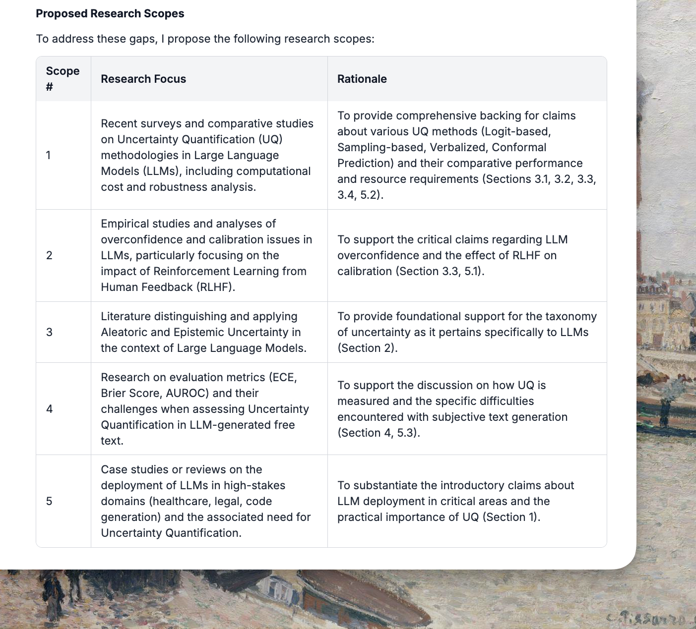 Upload files or ask complex questions. The AI understands your specific scope to find papers keyword search misses.